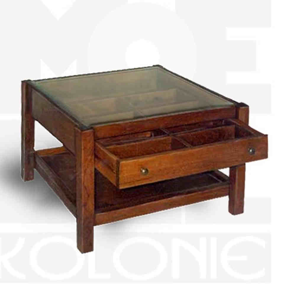 Ausführung Teakholz, mit Glasplatte oben und Schublade, sowie einem Ablageboden unten. Die Schublade ist unterteilt. Auch dieser Sofatisch kann sehr gut als kleine Vitrine zu präsentation liebgewonnener Sammlerstücke benutz werden. Diesen Sofatisch erhalten Sie bei uns in unterschiedlichen Formaten und Farben.