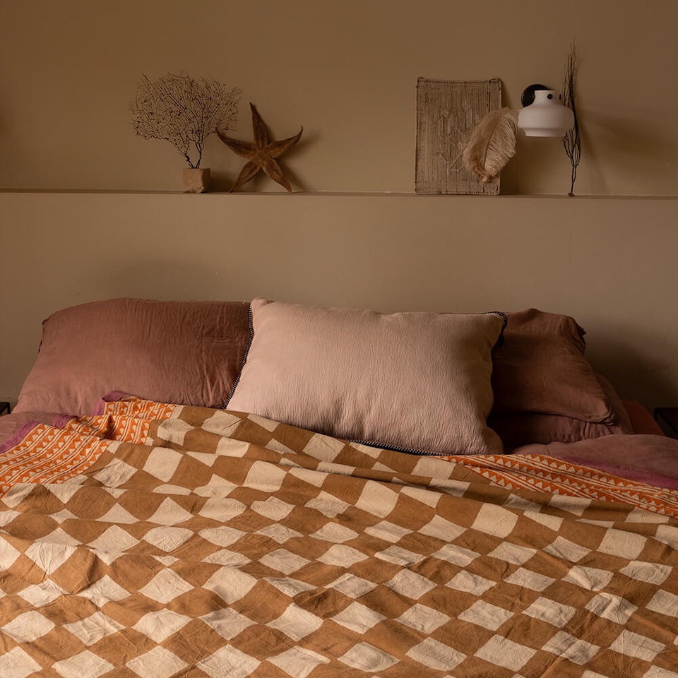 Dieser wunderbare Überwurf CHECKMATE wird von Hand mit Holz-Stempeln bedruckt und ist vielseitig einsetzbar. Ob als Plaid für Bett und Sofa, als Tischdecke als besondere Tischdeko oder für ein Picknick. Auch am Strand, ist dieses Plaid ist ein echter Blickfang. Unser Plaid CHECKMATE wird in der passenden Tragetasche ebenfalls aus 100% Baumwolle geliefert.