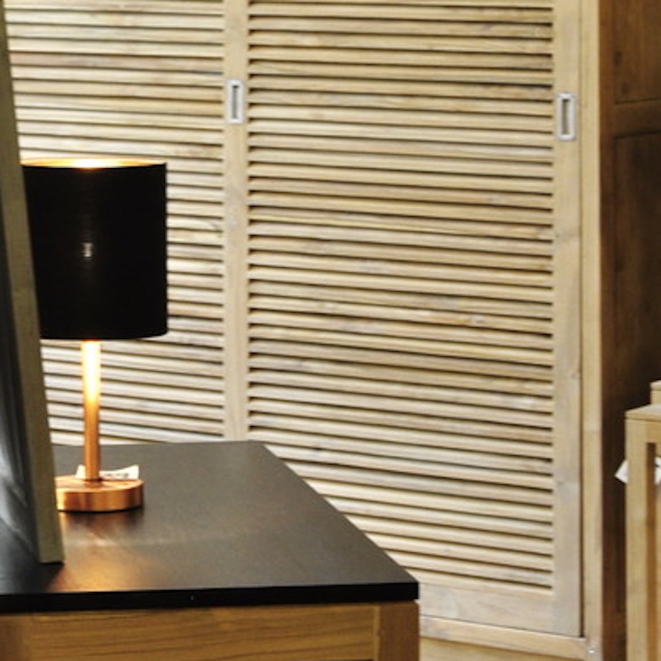 Unser Kleiderschrank MANACOR aus Massivholz Teak ist der optimale Ordnungshüter für das Schlafzimmer, Kinderzimmer oder den Flur. Der Schrank mit 2 Schiebetüren im Shutter- Design sorgt für mediterranes Flair im Ambiente. MANACOR bietet genügend Stauraum für Kleidung, Wäsche und andere Dinge des täglichen Lebens. Der Schrank MANACOR in massiver Bauweise ist aus dem Edelholz Teak vom Schreiner in Handarbeit gefertigt und ist auch mit Vollholz Türfüllungen, in Ihren individuellen Wunschmaßen und in allen unseren MOEBEL KOLONIE Farben erhältlich. Auch das Innenleben unseres MANACOR Massivholz Schrankes ist individuell wählbar.