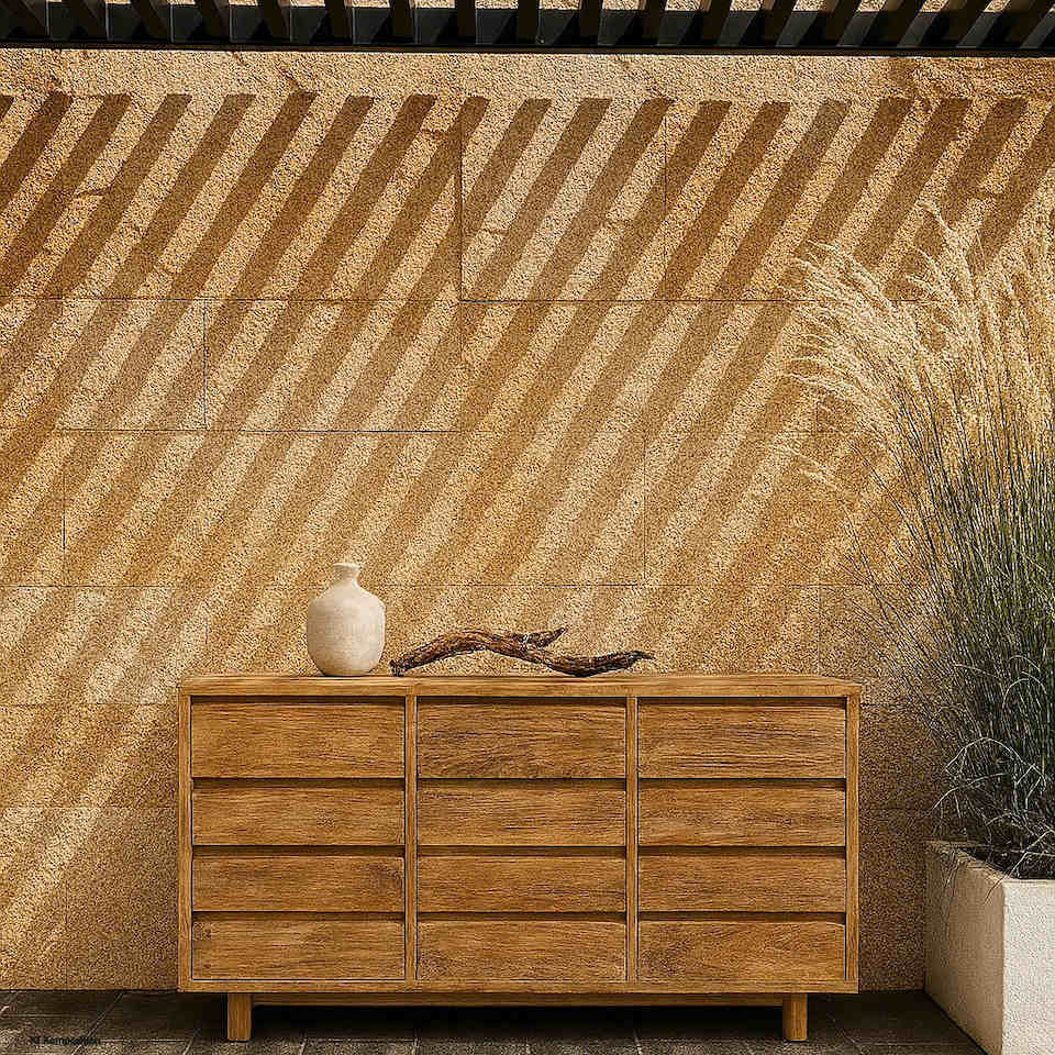 Unsere Kommode TWELVE, im klassisch, modernen Design ist aus massivem zertifiziertem Teakholz von Schreinerhand gefertigt. Da die Oberfläche von dieser schönen Kommode teilweise gebürstet ist, weist sie einewunderbare Haptik auf. TWELVE lässt sich stilsicher in nahezu jedes Ambiente gut integrieren. Diese massive Teakholz Kommode mit 12 geräumigen Schubladen ist ein zeitloser Begleiter in nahezu jedem Raum.