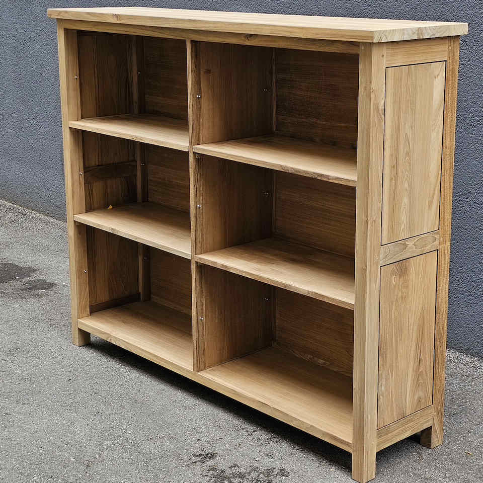 Unser halbhohes Regal RUSTICO im klassischen Stil ist ein Massivholz Regal aus zertifiziertem Teakholz und wurde von Meisterhand geschreinert. Dieses zeitlose Regal mit Rückwand und 6 großen Fächern ist ein ideales Möbel zur Ablage bzw. Aufbewahrung Ihrer Bücher, Accessoires und anderer Dinge des alltäglichen Lebens. RUSTICO ist ein stilsicherer Begleiter im Zuhause - Ob im Wohnzimmer, im Büro oder in der Leseecke. Das Massivholz Regal, in klarem Design, hat eine sehr komfortable Höhe, so dass eine besondere Accessoires oder eine elegante Tischlampe auf der Abschlussplatte, RUSTICO besonders schön in Szene könnte.